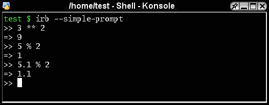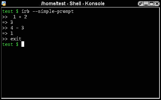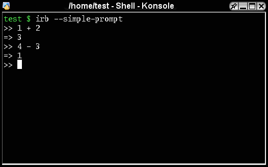 Auf der einfachsten Stufe können Sie ruby als Taschenrechner benutzen. Versuchen Sie dies: