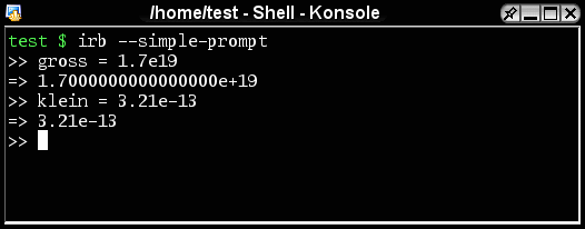 (irb). Öffnen Sie eine Konsole und tippen Sie: