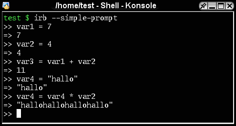 Eine Variable ist ein Name den Ruby einem bestimmten Object zuordnet. Zum Beispiel:
