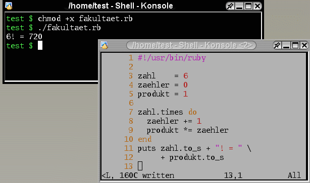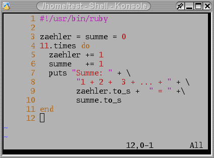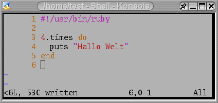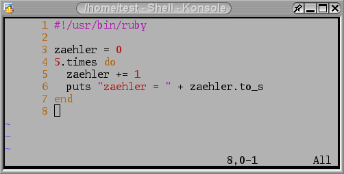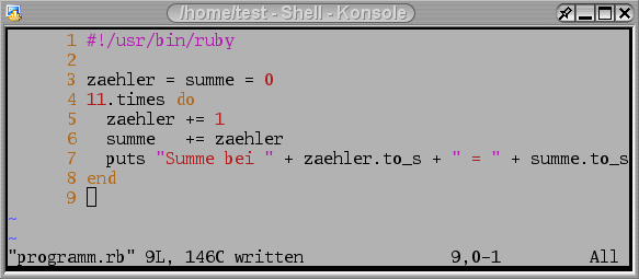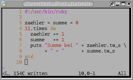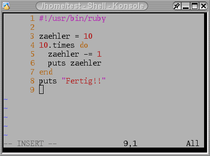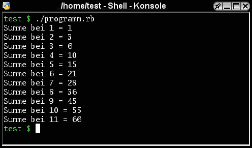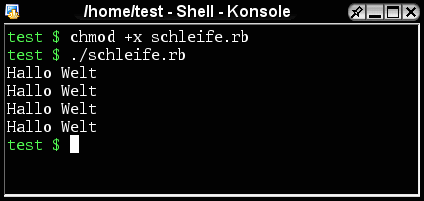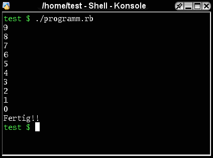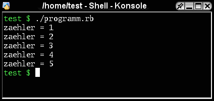 Können Sie erraten, was dieser Code macht? Speichern Sie die Datei als schleife.rb ab und starten Sie diese.
