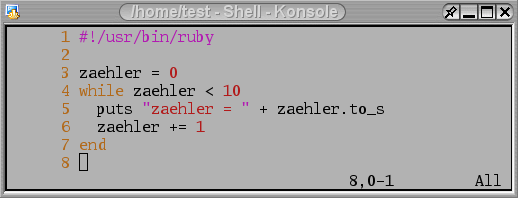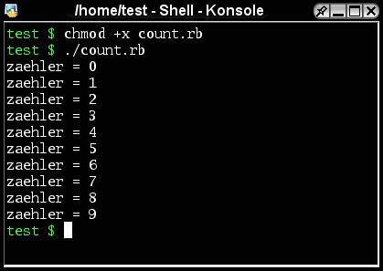 Das geht so weiter bis zaehler 10 ist. Die Ausgabe dieser Schleife ist somit:
