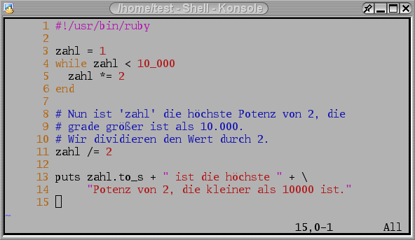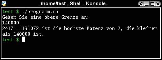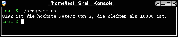 Wir möchten die höchste Potenz von 2 wissen, die kleiner als 10000 ist. Das ist mit einer while-Schleife einfach: