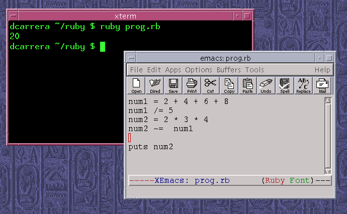 | Note: When you make a Ruby program, only the lines with puts will be printed to the screen. |