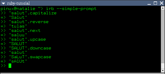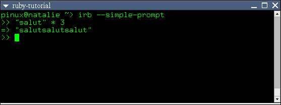 Voici quelques trucs amusants que Ruby vous permet de faire avec des chaînes de caractères: