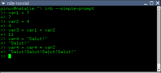 Ruby vous permet d'utiliser des variables pour associer des noms à des objets particuliers. Exemple: