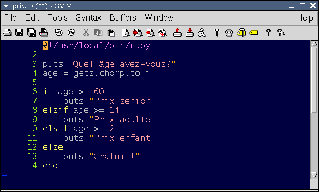elsif age >= 2 puts "Prix enfant"