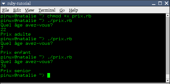 elsif age >= 14 puts "Prix adulte"