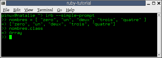 Vous vous êtes déjà familiarisé avec deux classes Ruby, Integer et String. La classe Array représente une collection d'objets.