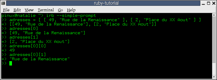 La plus grande force de Ruby réside dans ses structures de données. Ce chapitre vous enseignera ces concepts pour écrire des programmes bien plus intéressants. Vous allez apprendre comment exprimer facilement des informations complexes, comme un carnet d'adresses complet.